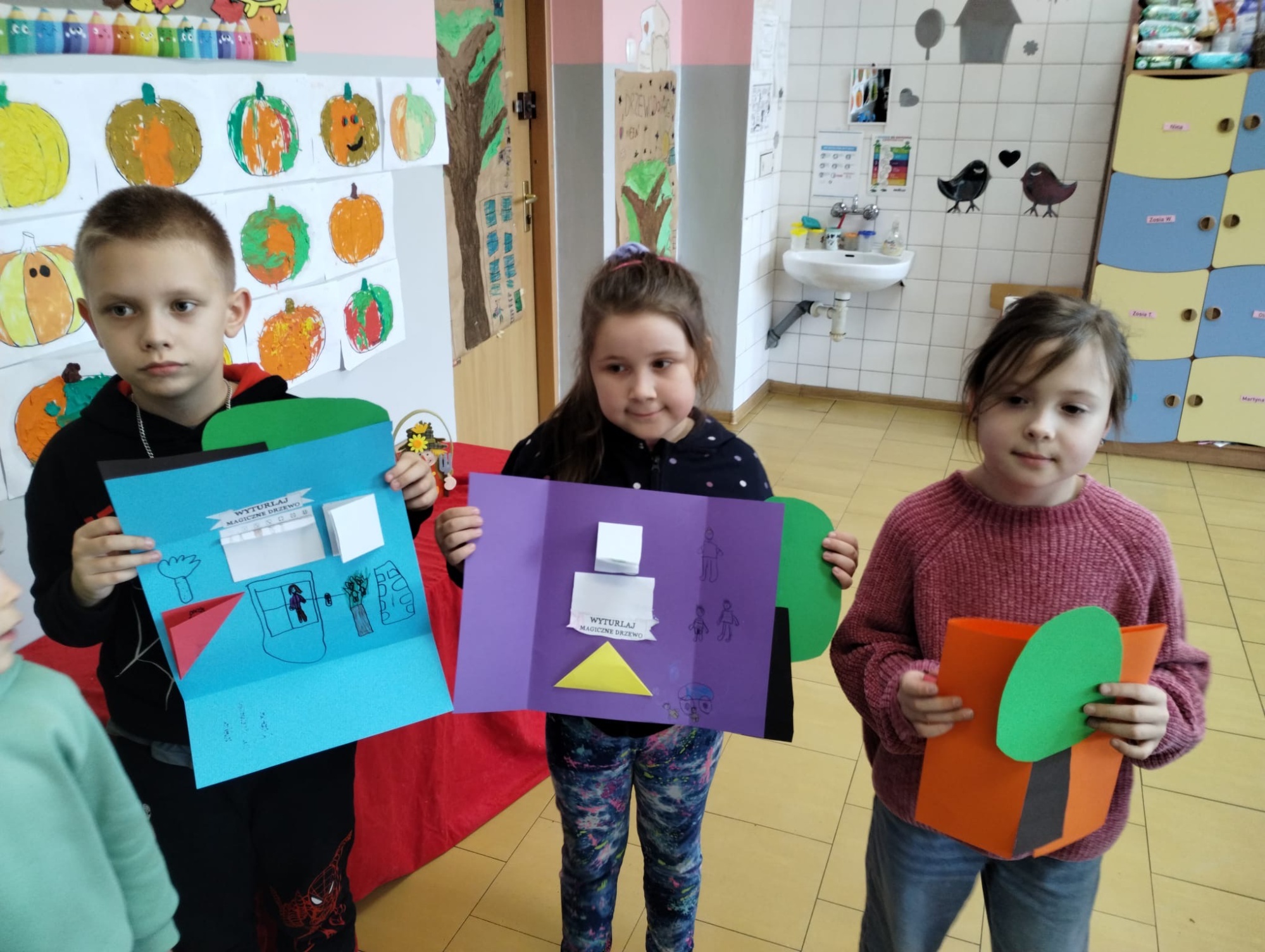 Podczas zajęć, nasi mali odkrywcy zamienili się w prawdziwych twórców i zrealizowali szereg kreatywnych działań związanych z lekturą "Drzewo do samego nieba". Oto, co udało im się stworzyć: