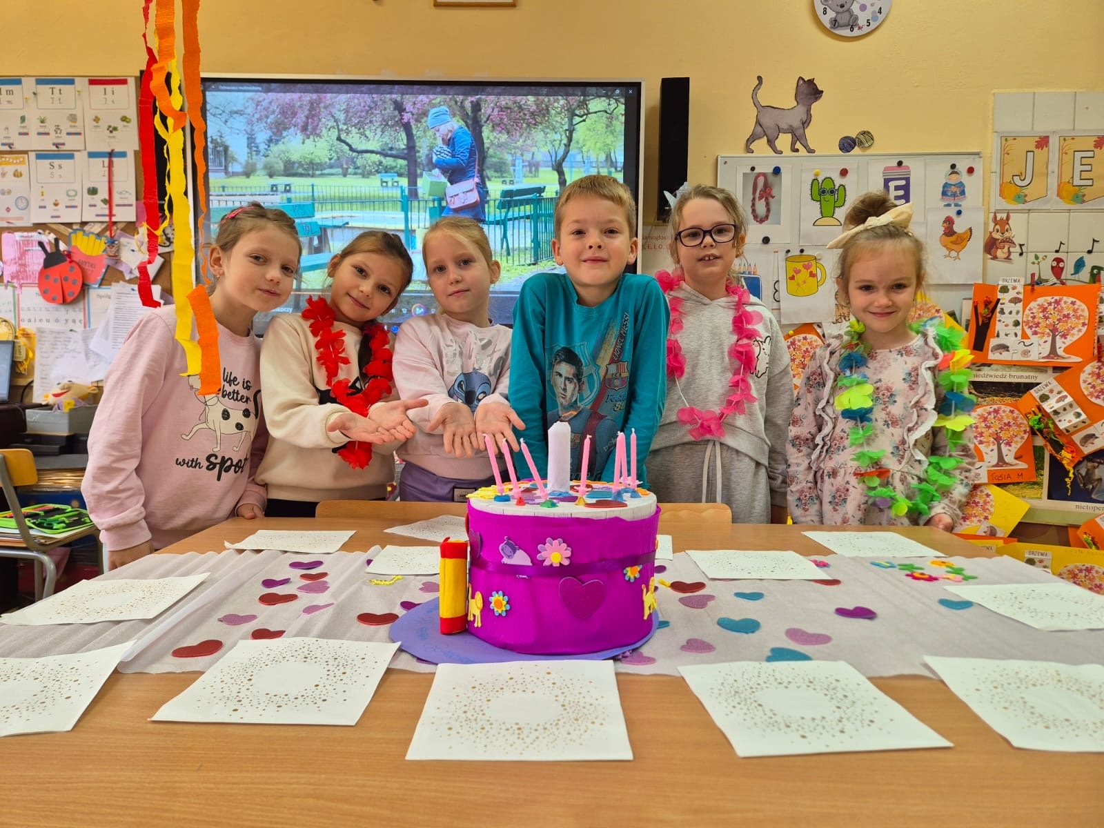 Mali studenci Uniwersytetu Dzieci zaangażowali się w realizację zadania projektowego - Jak trenować myślenie. Sala lekcyjna zupełnie zmieniła wygląd, stała się magiczną krainą, a dzieci miały za zadanie odszukać ukryty skarb.Każdy otrzymał mapę z zaznaczonym miejscem. To była świetna zabawa i wszystkim udało się prawidłowo odczytać mapę i znaleźć ukryty skarb. Ta zabawa na rozgrzewkę była znakomitą okazją do wprowadzenia w tematykę zajęć, rozgrzewką twórczą. Dzieci zastanawiały się czy uda się przygotować przyjęcie urodzinowe bez wcześniejszego dokładnego zaplanowania i przygotowania. Praca w grupach była doskonałą okazją do dzielenia się pomysłami, a efekty pracy pierwszaków były bardzo twórcze, kreatywne i zaskakujące.